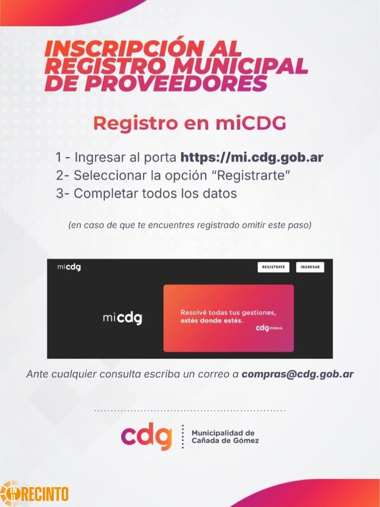 Prensa En el Recinto. La Municipalidad de Cañada de Gómez informa que se encuentra abierta la inscripción al Registro de Proveedores del Estado, una herramienta que permite transparentar y agilizar los procesos administrativos de contratación pública.